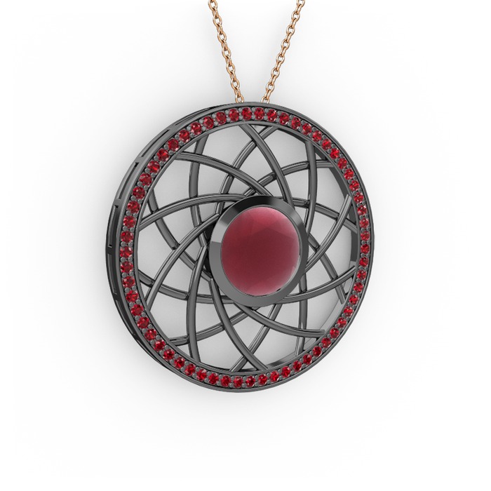 Kök yakut ve garnet 925 ayar siyah rodyum kaplama gümüş kolye (40 cm rose altın rolo zincir)