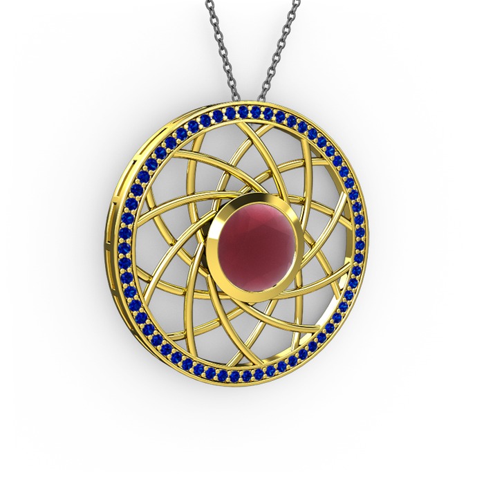 Kök yakut ve lab safir 14 ayar altın kolye (40 cm gümüş rolo zincir)