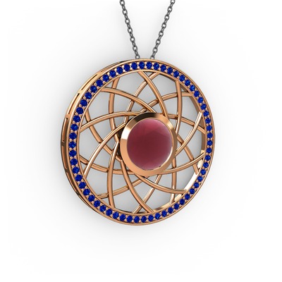 Kök yakut ve lab safir 14 ayar rose altın kolye (40 cm gümüş rolo zincir)