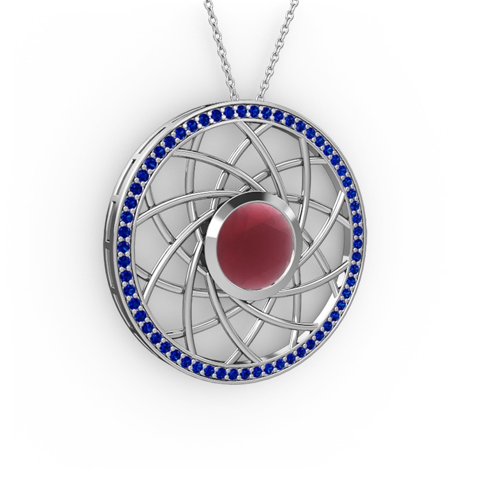 Kök yakut ve lab safir 925 ayar gümüş kolye (40 cm gümüş rolo zincir)