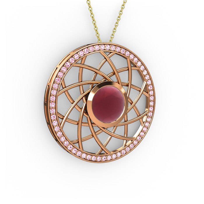 Kök yakut ve pembe kuvars 14 ayar rose altın kolye (40 cm altın rolo zincir)