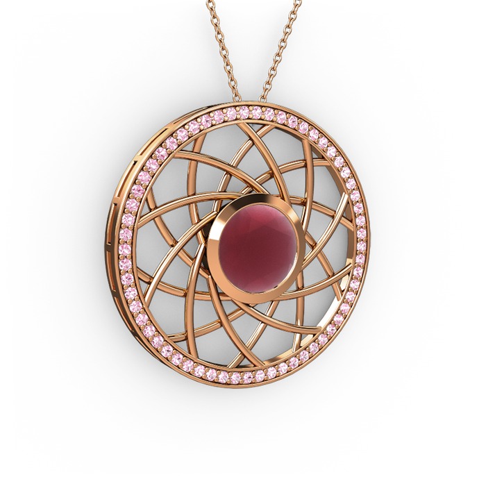Kök yakut ve pembe kuvars 18 ayar rose altın kolye (40 cm rose altın rolo zincir)