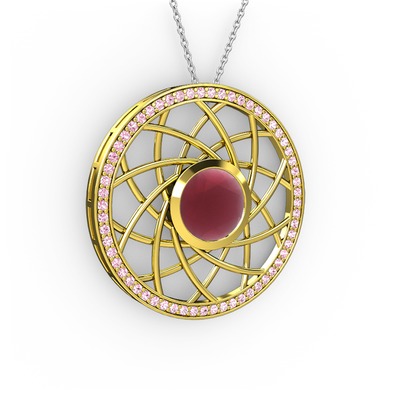 Kök yakut ve pembe kuvars 925 ayar altın kaplama gümüş kolye (40 cm beyaz altın rolo zincir)