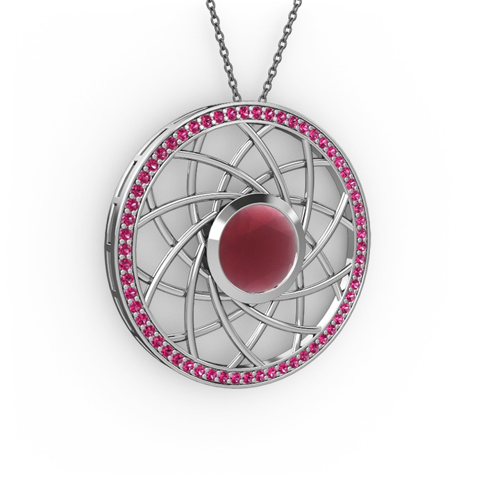 Kök yakut ve rodolit garnet 18 ayar beyaz altın kolye (40 cm gümüş rolo zincir)