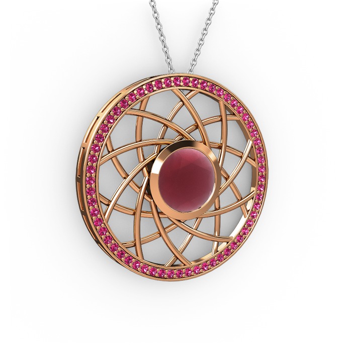 Kök yakut ve rodolit garnet 18 ayar rose altın kolye (40 cm beyaz altın rolo zincir)