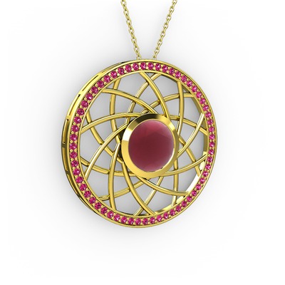 Kök yakut ve rodolit garnet 8 ayar altın kolye (40 cm gümüş rolo zincir)