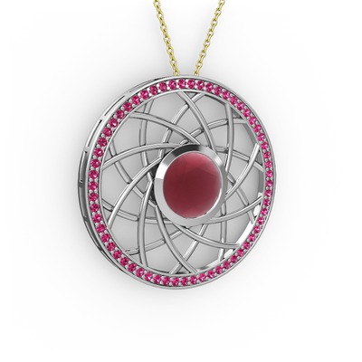 Kök yakut ve rodolit garnet 925 ayar gümüş kolye (40 cm altın rolo zincir)