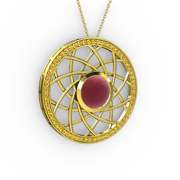 Kök yakut ve sitrin 18 ayar altın kolye (40 cm altın rolo zincir)