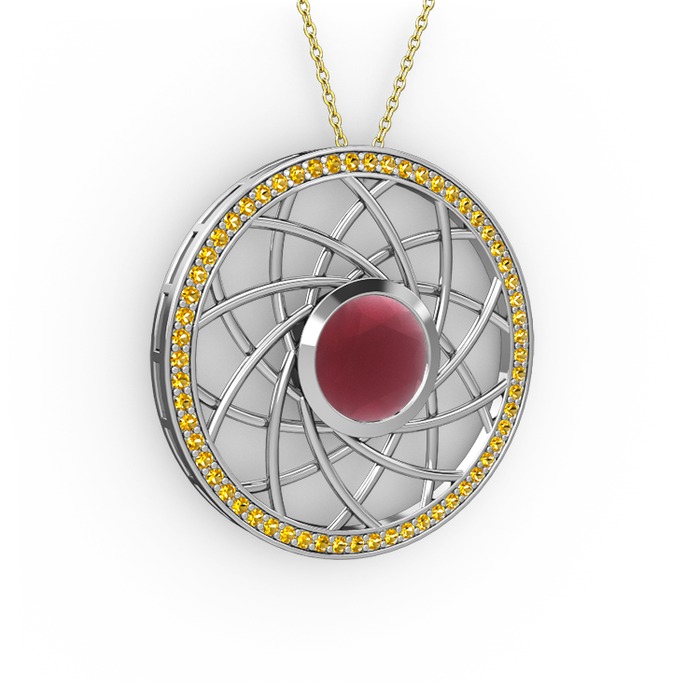 Kök yakut ve sitrin 925 ayar gümüş kolye (40 cm altın rolo zincir)