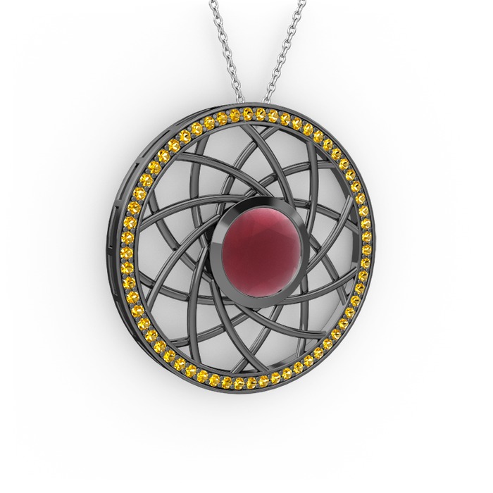 Kök yakut ve sitrin 925 ayar siyah rodyum kaplama gümüş kolye (40 cm gümüş rolo zincir)