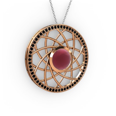 Kök yakut ve siyah zirkon 8 ayar rose altın kolye (40 cm beyaz altın rolo zincir)