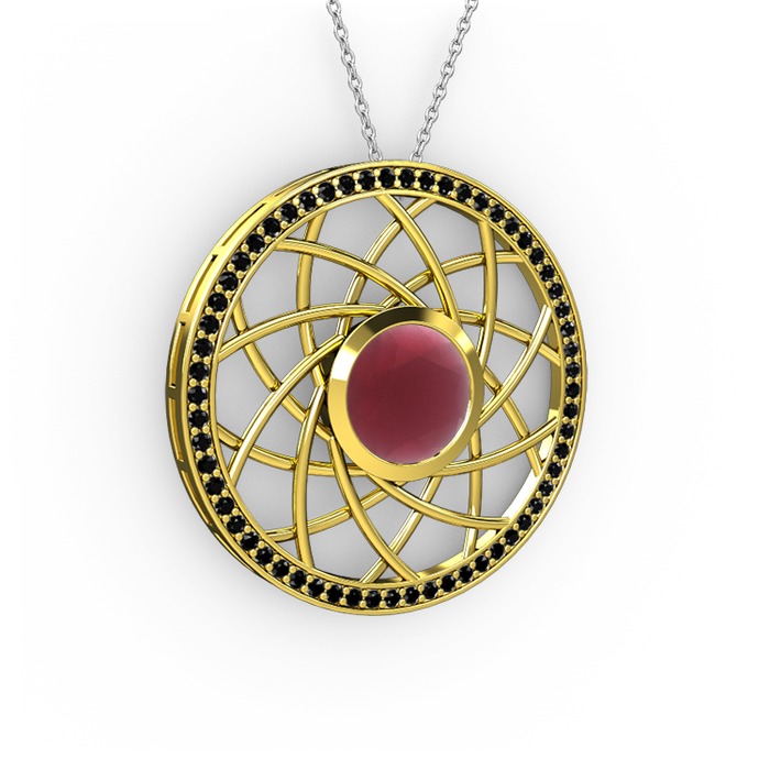 Kök yakut ve siyah zirkon 925 ayar altın kaplama gümüş kolye (40 cm beyaz altın rolo zincir)
