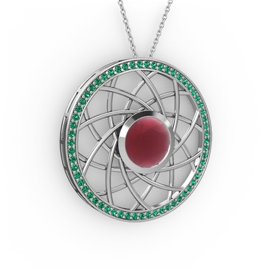 Kök yakut ve yeşil kuvars 14 ayar beyaz altın kolye (40 cm beyaz altın rolo zincir)