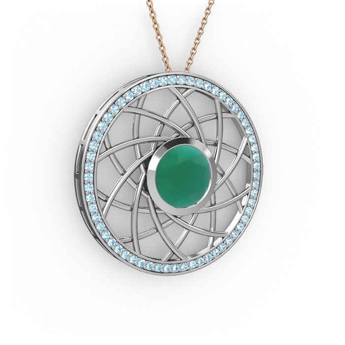Kök zümrüt ve akuamarin 18 ayar beyaz altın kolye (40 cm rose altın rolo zincir)