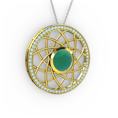 Kök zümrüt ve akuamarin 925 ayar altın kaplama gümüş kolye (40 cm gümüş rolo zincir)