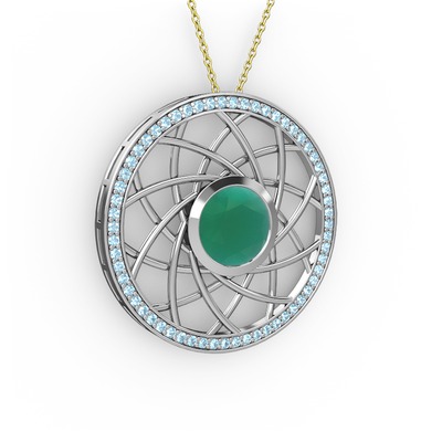 Kök zümrüt ve akuamarin 925 ayar gümüş kolye (40 cm altın rolo zincir)