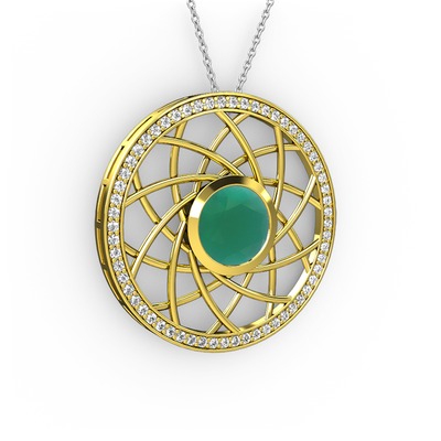 Kök zümrüt ve beyaz zirkon 14 ayar altın kolye (40 cm beyaz altın rolo zincir)