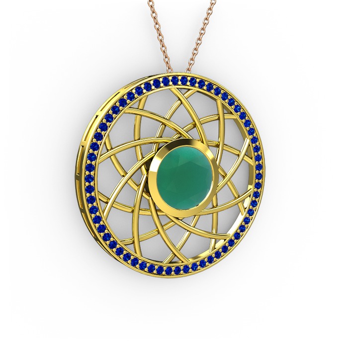 Kök zümrüt ve lab safir 8 ayar altın kolye (40 cm rose altın rolo zincir)