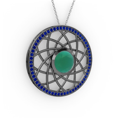 Kök zümrüt ve lab safir 925 ayar siyah rodyum kaplama gümüş kolye (40 cm beyaz altın rolo zincir)