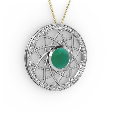Kök zümrüt ve pırlanta 14 ayar beyaz altın kolye (0.66 karat, 40 cm altın rolo zincir)