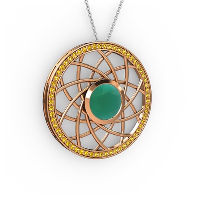 Kök zümrüt ve sitrin 8 ayar rose altın kolye (40 cm beyaz altın rolo zincir)