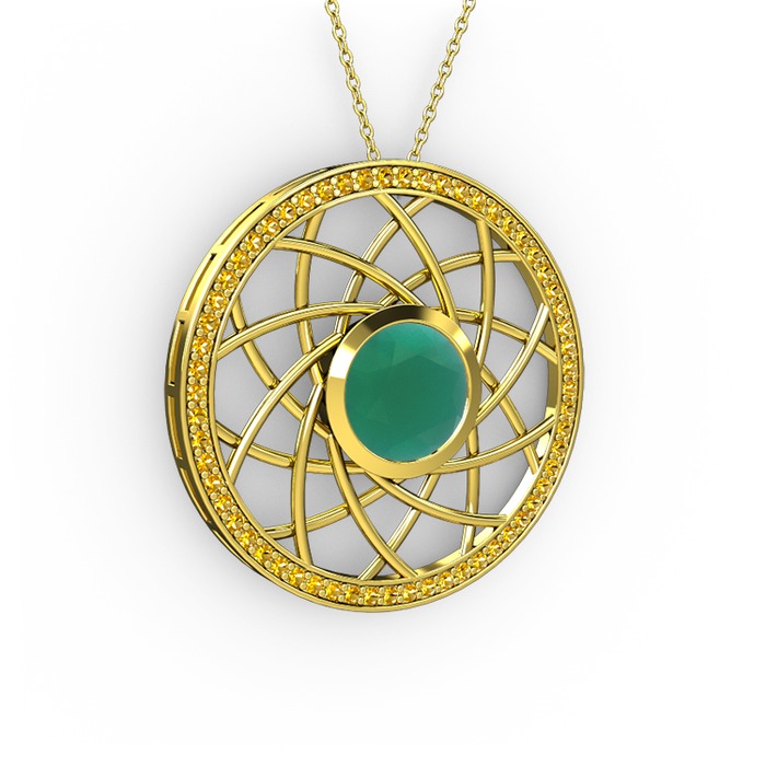 Kök zümrüt ve sitrin 925 ayar altın kaplama gümüş kolye (40 cm gümüş rolo zincir)