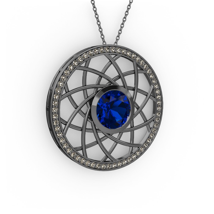 Lab safir ve dumanlı kuvars 925 ayar siyah rodyum kaplama gümüş kolye (40 cm gümüş rolo zincir)