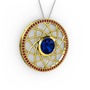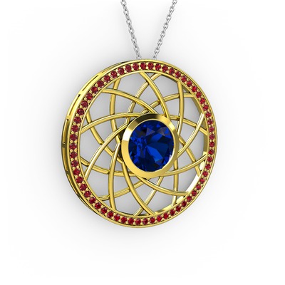 Lab safir ve garnet 18 ayar altın kolye (40 cm beyaz altın rolo zincir)