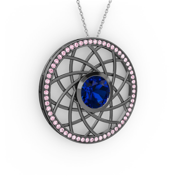 Lab safir ve pembe kuvars 925 ayar siyah rodyum kaplama gümüş kolye (40 cm beyaz altın rolo zincir)
