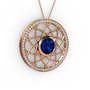 Lab safir ve pırlanta 18 ayar rose altın kolye (0.66 karat, 40 cm rose altın rolo zincir)