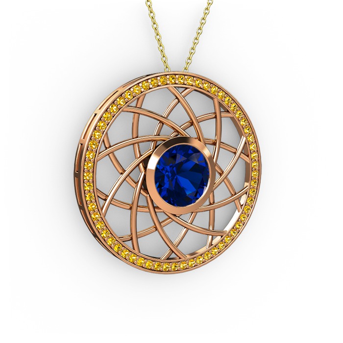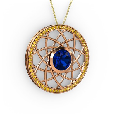 Lab safir ve sitrin 8 ayar rose altın kolye (40 cm gümüş rolo zincir)