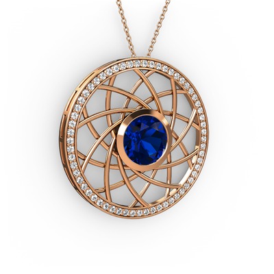 Lab safir ve swarovski 8 ayar rose altın kolye (40 cm rose altın rolo zincir)