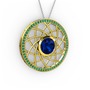 Lab safir ve yeşil kuvars 14 ayar altın kolye (40 cm beyaz altın rolo zincir)