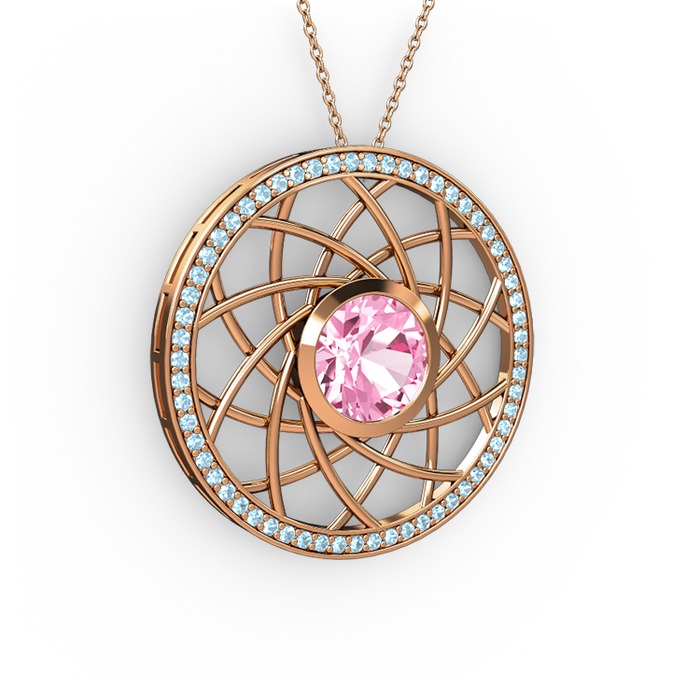 Pembe kuvars ve akuamarin 18 ayar rose altın kolye (40 cm rose altın rolo zincir)