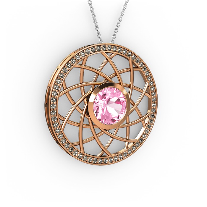 Pembe kuvars ve dumanlı kuvars 18 ayar rose altın kolye (40 cm gümüş rolo zincir)