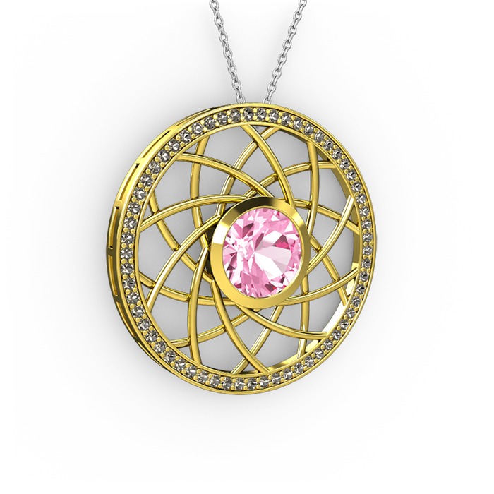 Pembe kuvars ve dumanlı kuvars 925 ayar altın kaplama gümüş kolye (40 cm beyaz altın rolo zincir)