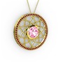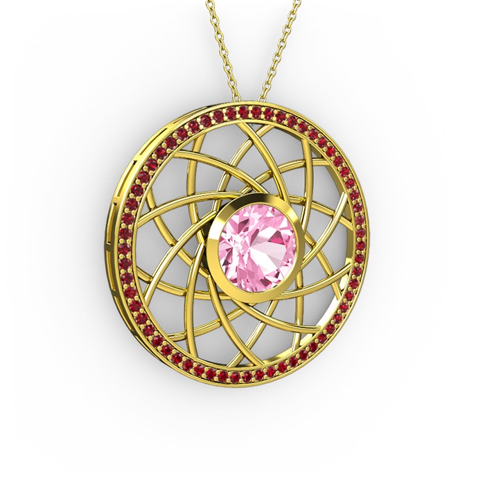 Pembe kuvars ve garnet 14 ayar altın kolye (40 cm altın rolo zincir)