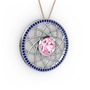 Pembe kuvars ve lab safir 925 ayar gümüş kolye (40 cm rose altın rolo zincir)
