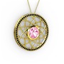 Pembe kuvars ve siyah zirkon 14 ayar altın kolye (40 cm altın rolo zincir)