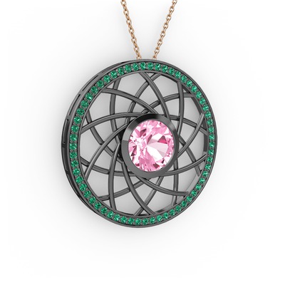 Pembe kuvars ve yeşil kuvars 925 ayar siyah rodyum kaplama gümüş kolye (40 cm rose altın rolo zincir)