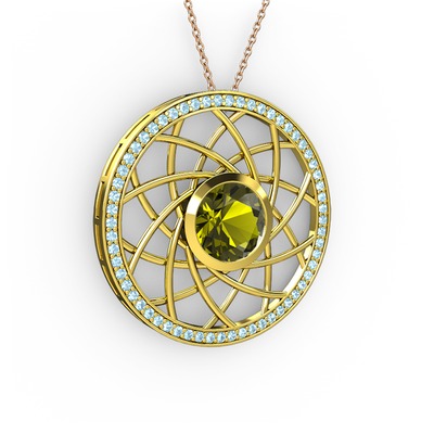 Peridot ve akuamarin 18 ayar altın kolye (40 cm rose altın rolo zincir)