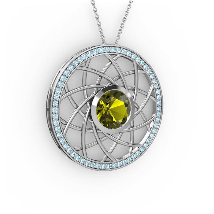 Peridot ve akuamarin 8 ayar beyaz altın kolye (40 cm gümüş rolo zincir)