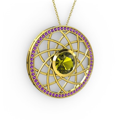 Peridot ve ametist 14 ayar altın kolye (40 cm altın rolo zincir)