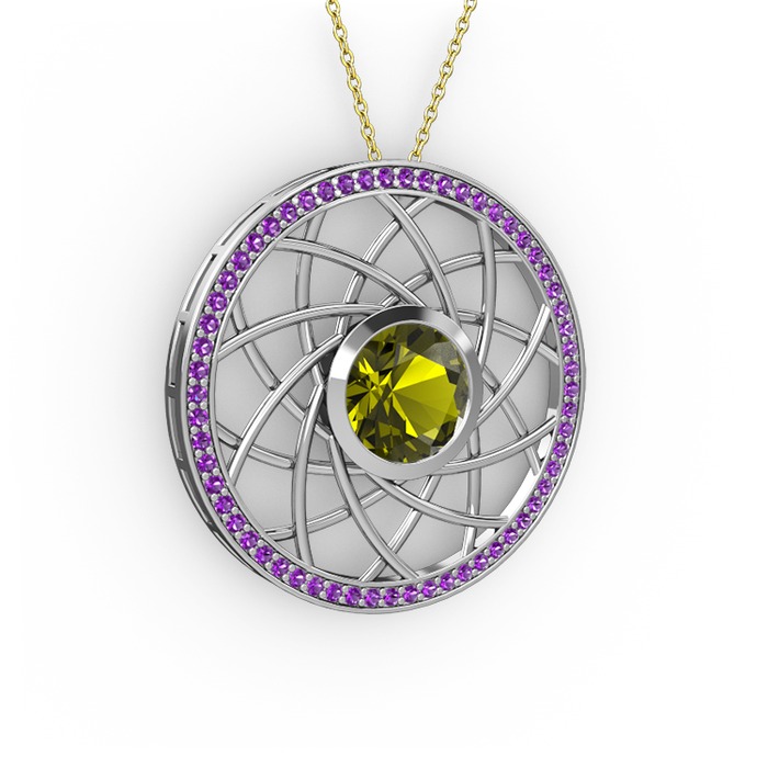 Peridot ve ametist 8 ayar beyaz altın kolye (40 cm altın rolo zincir)