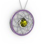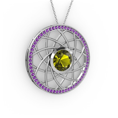 Peridot ve ametist 8 ayar beyaz altın kolye (40 cm gümüş rolo zincir)