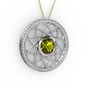 Peridot ve beyaz zirkon 18 ayar beyaz altın kolye (40 cm altın rolo zincir)