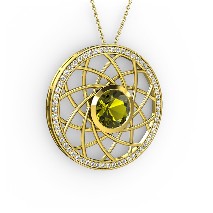 Peridot ve beyaz zirkon 8 ayar altın kolye (40 cm altın rolo zincir)
