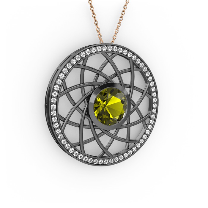 Peridot ve beyaz zirkon 925 ayar siyah rodyum kaplama gümüş kolye (40 cm rose altın rolo zincir)