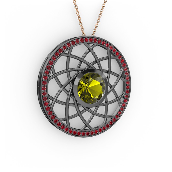 Peridot ve garnet 925 ayar siyah rodyum kaplama gümüş kolye (40 cm rose altın rolo zincir)