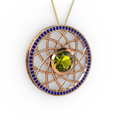 Peridot ve lab safir 18 ayar rose altın kolye (40 cm altın rolo zincir)
